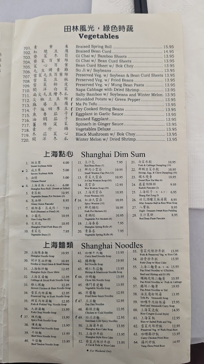 Authentic Shanghai food. Great price and excellent service. Reserve table in advance for party of 4 (or more).